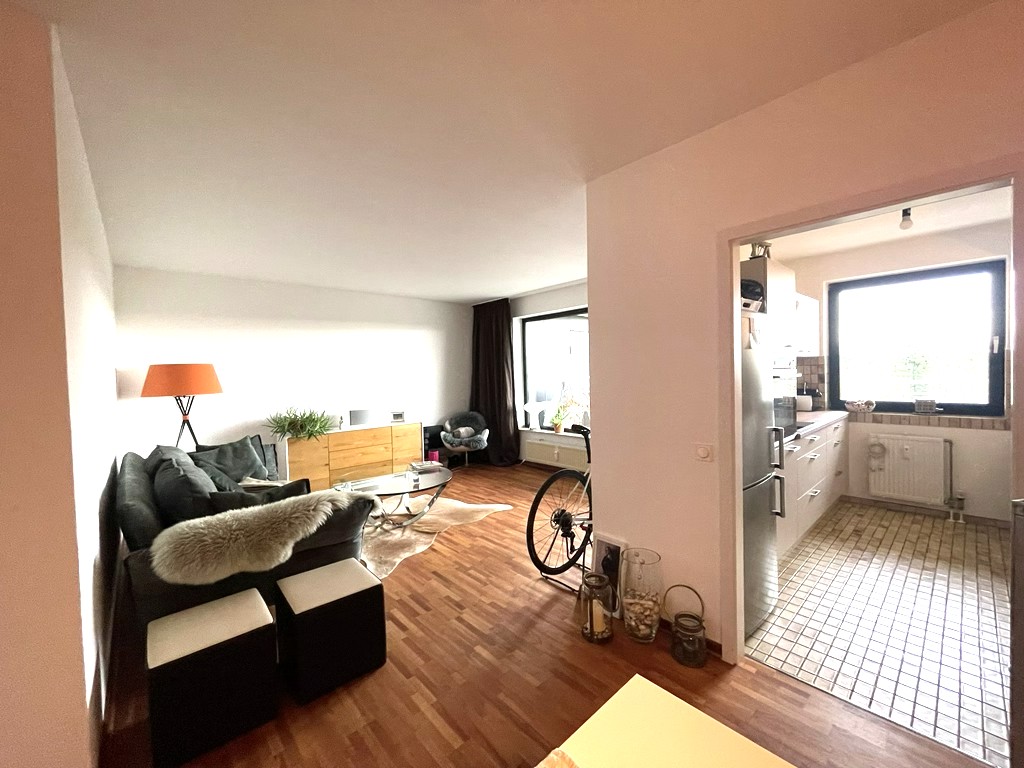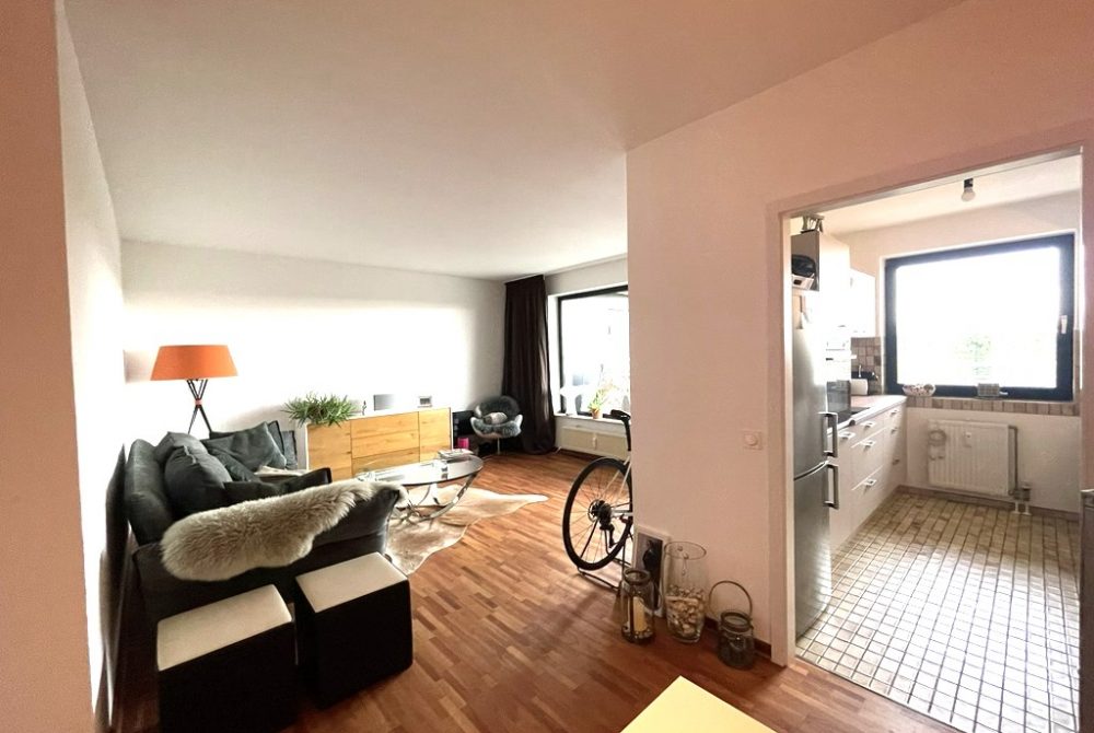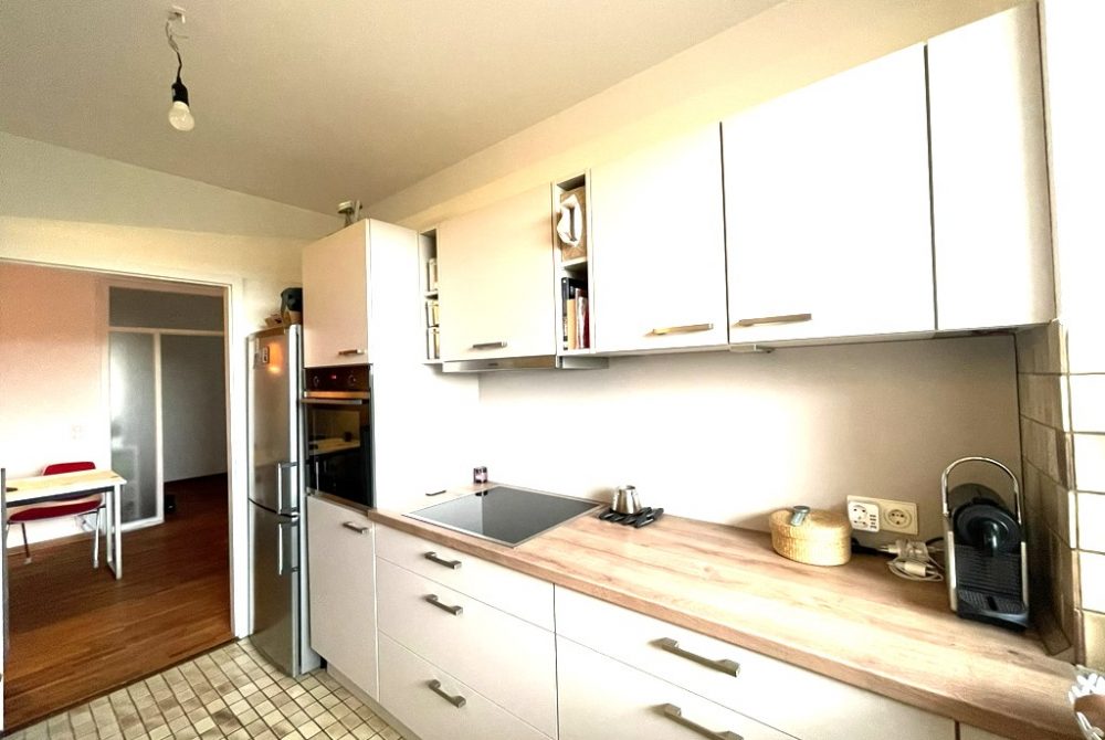 Die moderne Einbauküche von 2022 ist mit hochwertigen Elektrogeräten der Marke Siemens ausgestattet und kann auf Wunsch vom Vormieter übernommen werden.