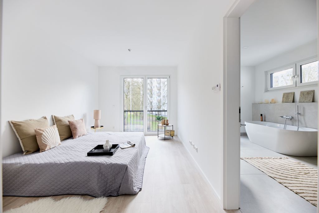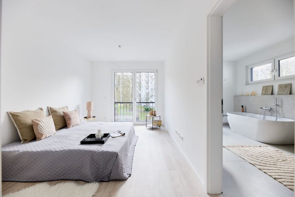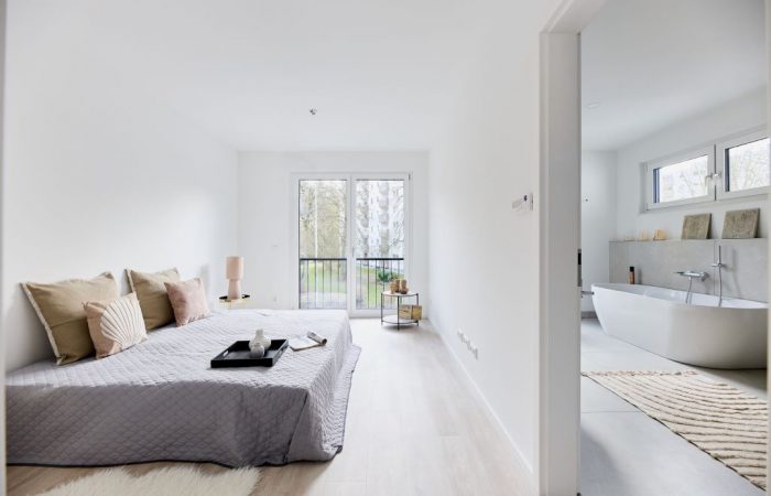 Im Obergeschoss erwartet Sie Ihr persönlicher Rückzugsort. Zwei stilvolle Schlafzimmer, jedes mit eigenem Duschbad, bieten Komfort und Privatsphäre. Der separate Elternbereich wird zur persönlichen Wohlfühloase. Ein Ankleidezimmer, ein traumhaftes Schlafzimmer und ein luxuriöses Badezimmer mit freistehender Badewanne, großzügiger Regendusche und edlem Doppelwaschtisch machen jeden Tag zu einem Spa Erlebnis.